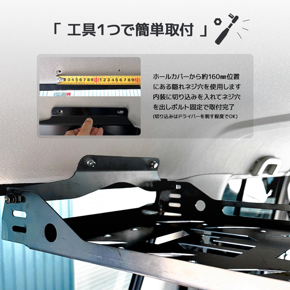 Since it uses a dedicated stay, it can be installed with only a 10mm ratchet. Attach using assist grip bolts and no drilling is required.