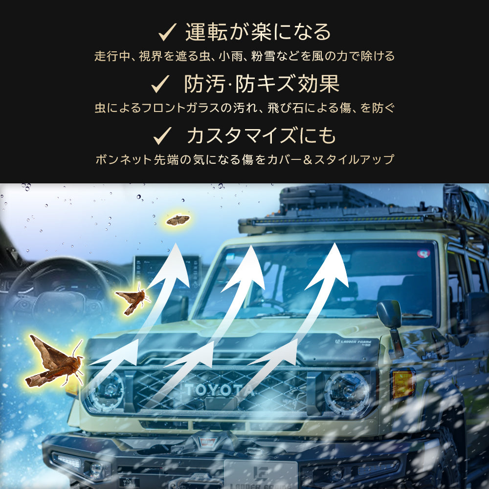再再販ランドクルーザー70の高速走行、虫汚れ対策に。 長距離ドライブや遠征で、SAに寄る回数が変わります |