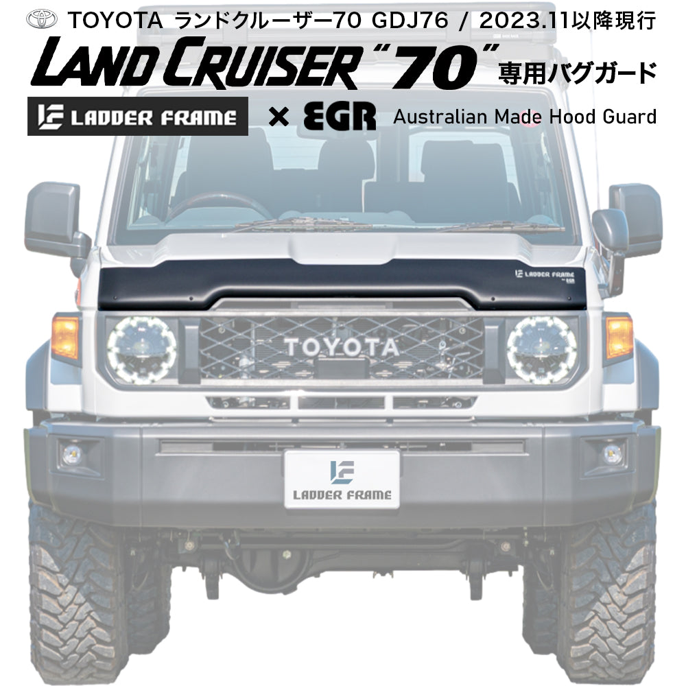 | フロントフェイスに厚みと立体感が出て、オフロード感がアップ。 存在感があり、ランドクルーザー70らしいタフな印象を引き立てます。 機能だけでなく、見た目のカスタムとしても満足度の高いアイテムです。 |